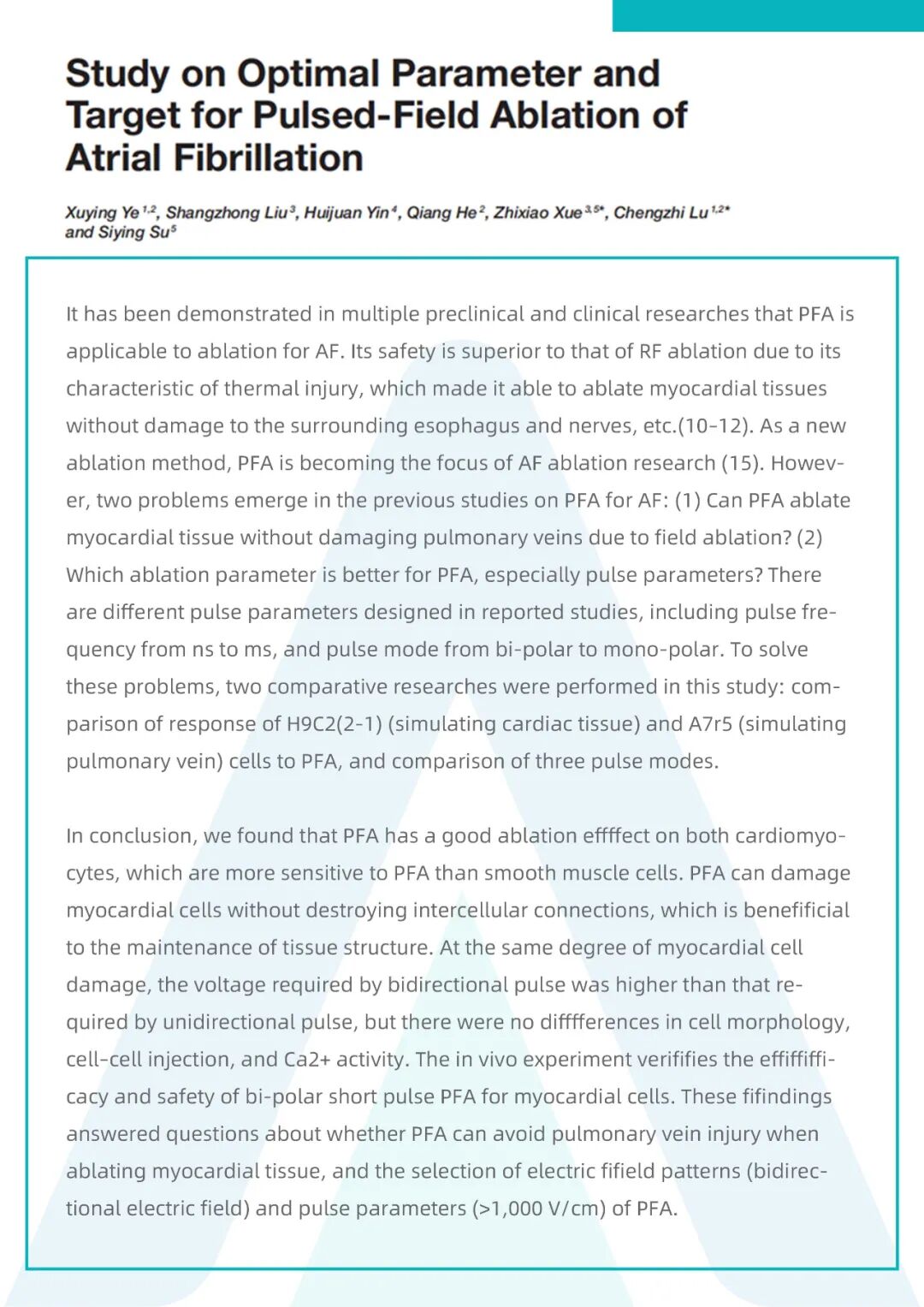 双向脉冲PFA能显著消融心肌细胞,保持细胞间连接完整,并降低肌肉收缩,是一种优化的房颤PFA消融策略。