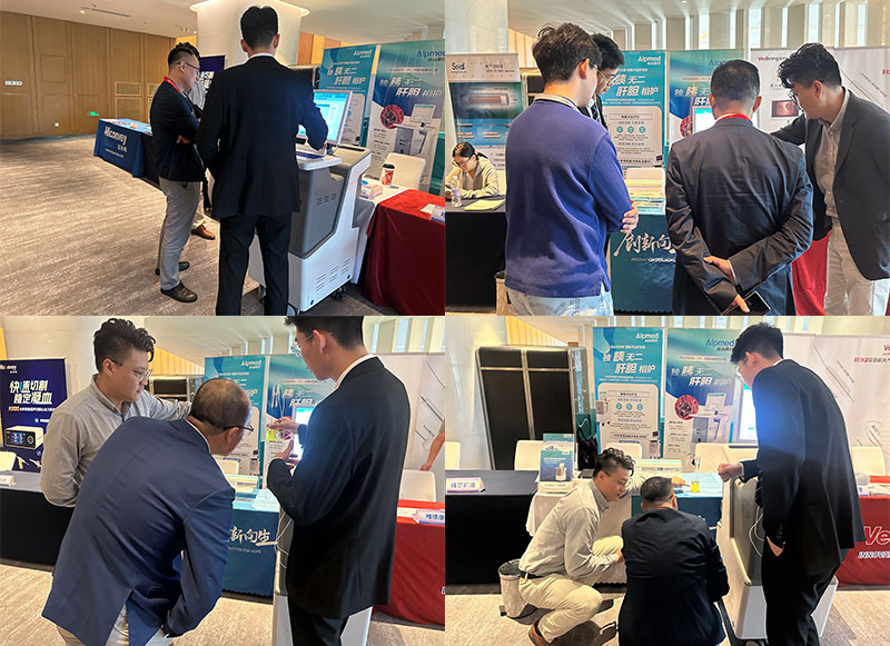 本次大会上,远山医疗展台吸引了众多专家驻足交流。现场展示了先前手术直播中使用的治疗利器:国产纳米刀—陡脉冲治疗仪和一次性使用陡脉冲电极消融针。工作人员通过实物操作与专业讲解,深入介绍产品优势,获得与会专家一致好评。