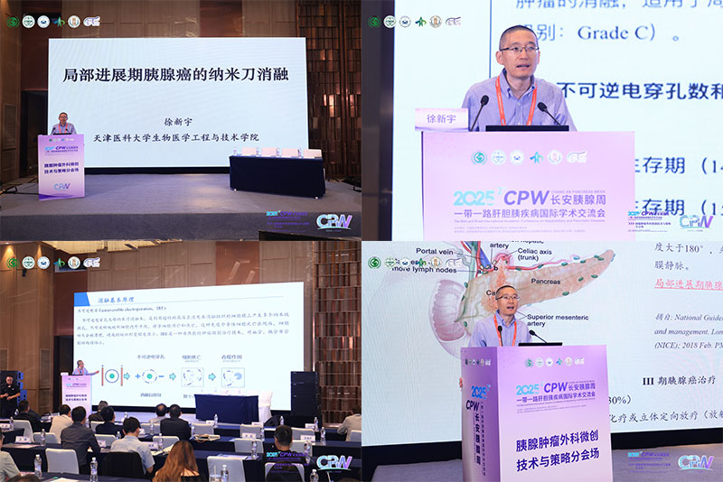 大会期间,特邀来自天津医科大学的徐新宇教授做了题为《局部进展期胰腺癌的纳米刀消融》的专题分享。徐教授从原理、设备到临床应用层层深入,结合共识与高质量临床数据,充分论证了纳米刀在胰腺癌治疗中的有效性,并分享了使用远山纳米刀的成功病例,再次验证其安全性与卓越性能。作为当天【胰腺肿瘤外科微创技术与策略分会场】的开场讲者,徐教授的精彩分享引起了与会专家们的高度关注与探讨。